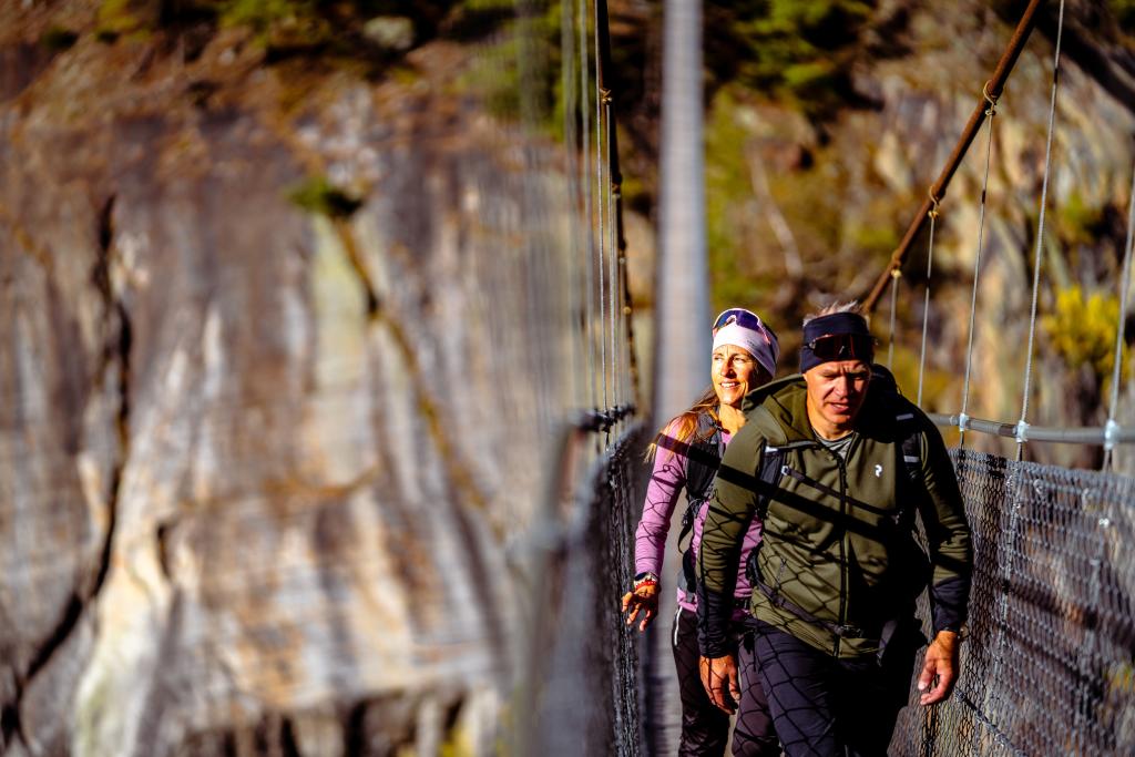 Am Fuße des Fiescher Gletschers über der Weisswasserschlucht und in Bellwald über der Lammaschlucht erstrecken sie sich – die zwei zu passierenden Hängebrücken mit einer Gesamtlänge von 440 Meter und einer Höhe von 220 Meter. Sie komplettieren Dein  Abenteuer entlang der unterschiedlichen Orte und versprechen Dir unvergleichliche Blicke auf das Gipfelmeer im Herzen des UNESCO Weltnaturerbes.