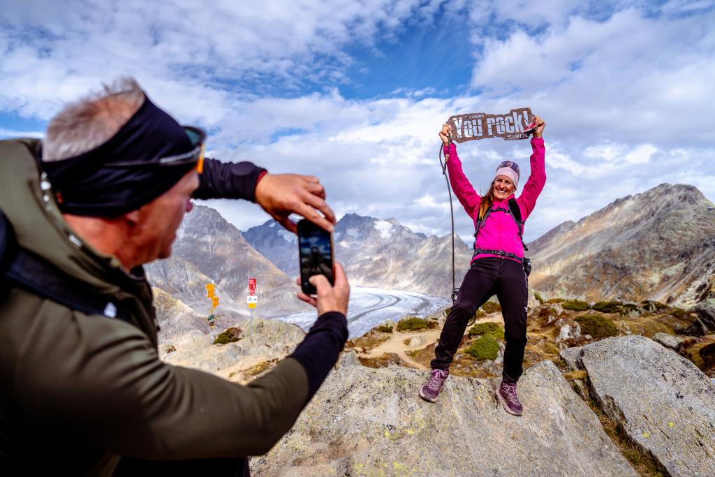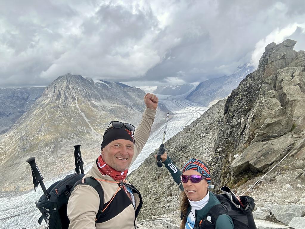 Das war tatsächlich schon in unserer Urlaubsplanung klar. Nach dem Stoneman Glaciara wollten wir unbedingt die Region auch zu Fuß erleben. Wir hatten zunächst Gold gebucht, haben uns aber aufgrund der Wetterbedingungen und des Schwierigkeitsgrads der Gratwanderung kurzfristig für die Silberwanderung entschieden. Zum Glück konnten wir kurzfristig umswitchen und eine Zwischenübernachtung auf der Bettmeralp buchen.